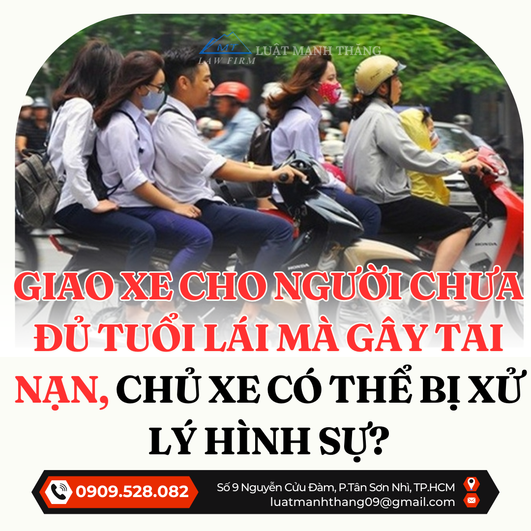 Việc giao xe cho người chưa đủ tuổi hoặc không có giấy phép lái xe là hành vi vi phạm pháp luật và tiềm ẩn nguy cơ gây hậu quả nghiêm trọng. Khi xảy ra tai nạn, chủ sở hữu phương tiện không chỉ bị xử phạt hành chính mà trong nhiều trường hợp còn có thể bị truy cứu trách nhiệm hình sự.
